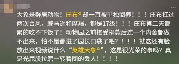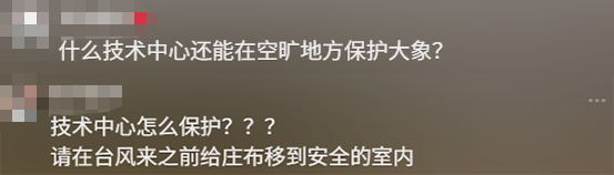 看着还挺正能量?但问题是为什么非得让大象硬抗台风来让园方产生所谓的“信心”?网友们就觉得非常离谱,不理解究竟有什么好宣传的,认为这根本就是没有把动物的生命放在眼里的行为。