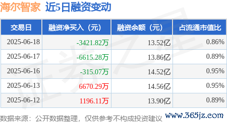本站消息,6月18日,海尔智家(600690)融资买入2003.77万元,融资偿还5425.6万元,融资净卖出3421.82万元,融资余额13.52亿元蜂窝配资,近20个交易日中有11个交易日出现融资净买入。
